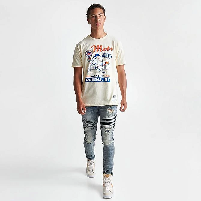 Two icons of New York join forces on the Men’s Mitchell & Ness New York Mets MLB Deli Graphic T-Shirt for a simply amazin’ tee to support your team. A graphic of Mr. Met and a delicatessen storefront pays homage to the borough the Mets call home, where the Mets have been servin’ you Queens style since 1962.