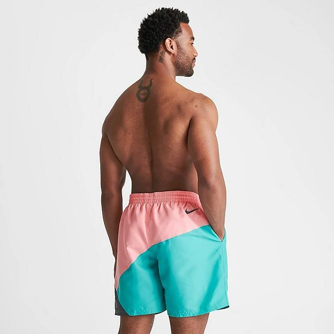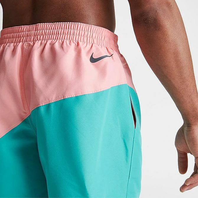 Go for a dip in the Men’s Nike Essential Jackknife Logo 7″ Swim Shorts. The bold pattern lends itself to retro colorblocking for a standout look for summertime fun.