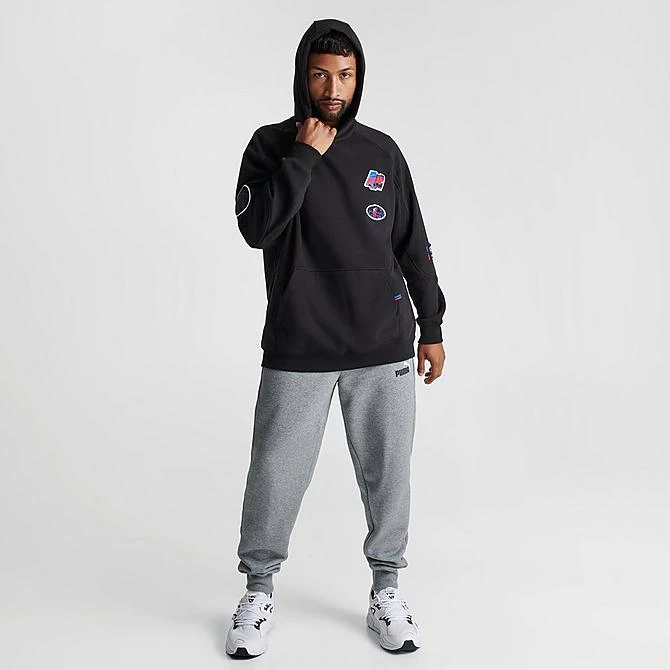 - The Puma BMW M Motorsport Statement Patchwork Logo Graphic Hoodie is imported.